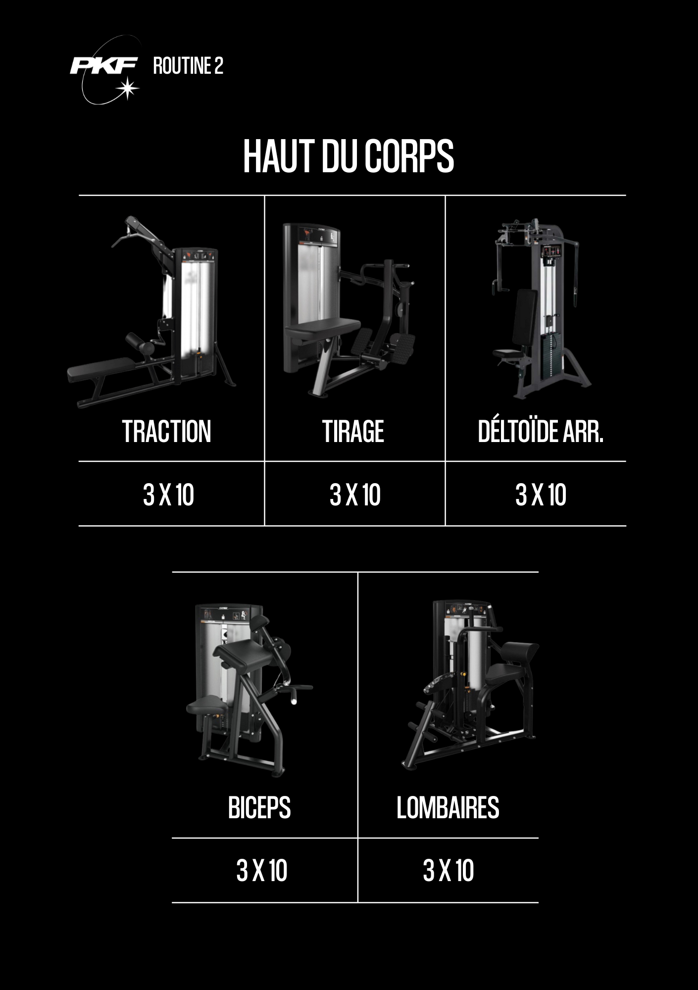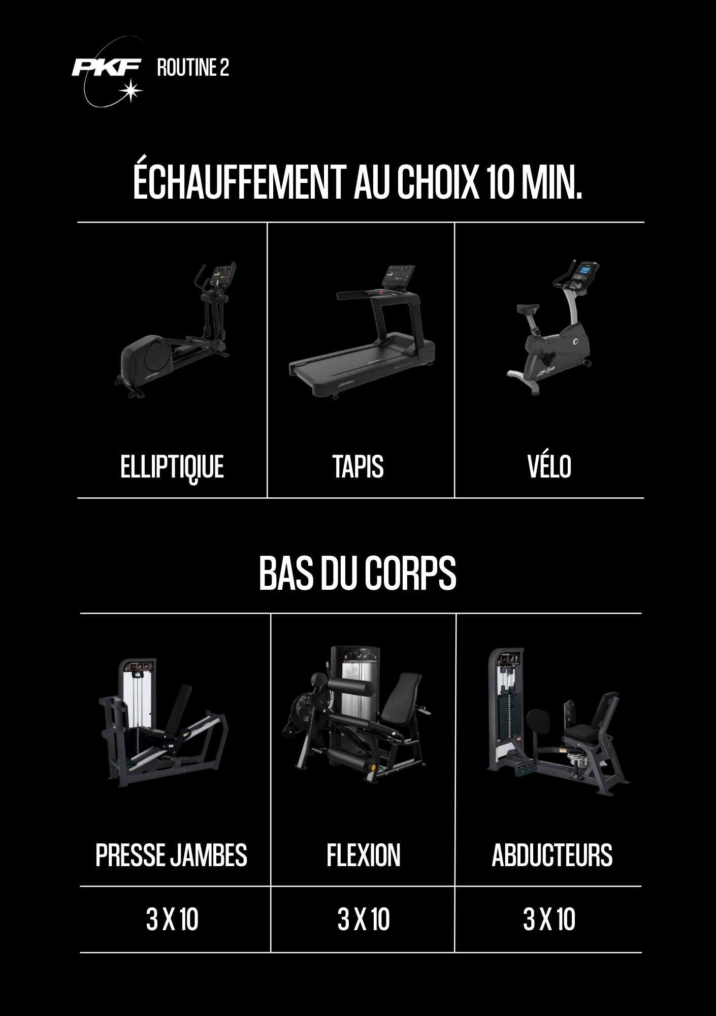 Il est possible de répéter l’une des deux routines plusieurs fois dans la semaine pour atteindre un rythme de 3 à 4 entraînements hebdomadaires.